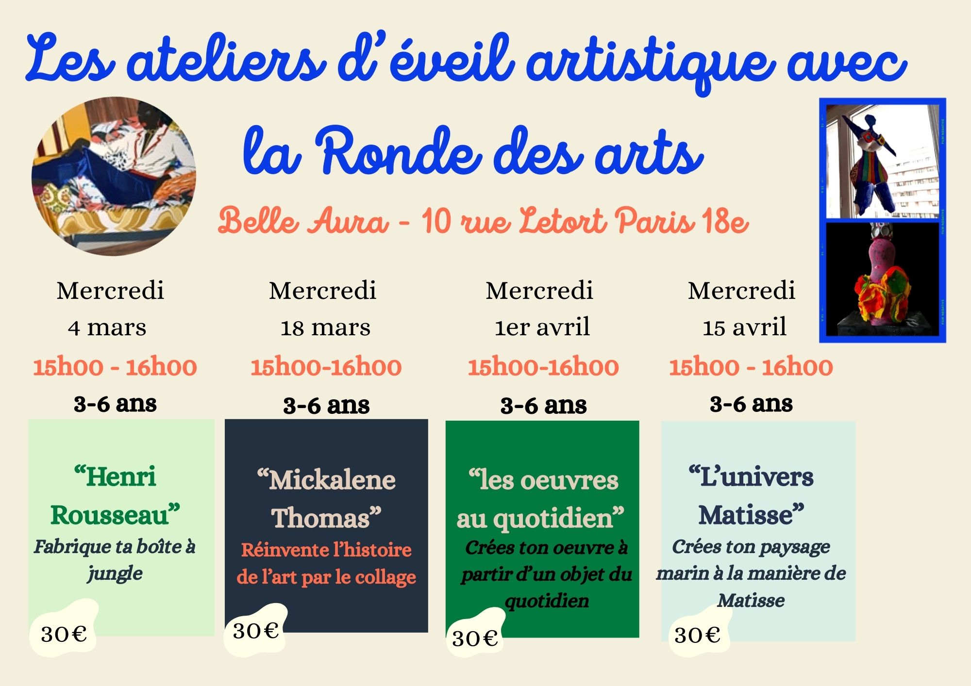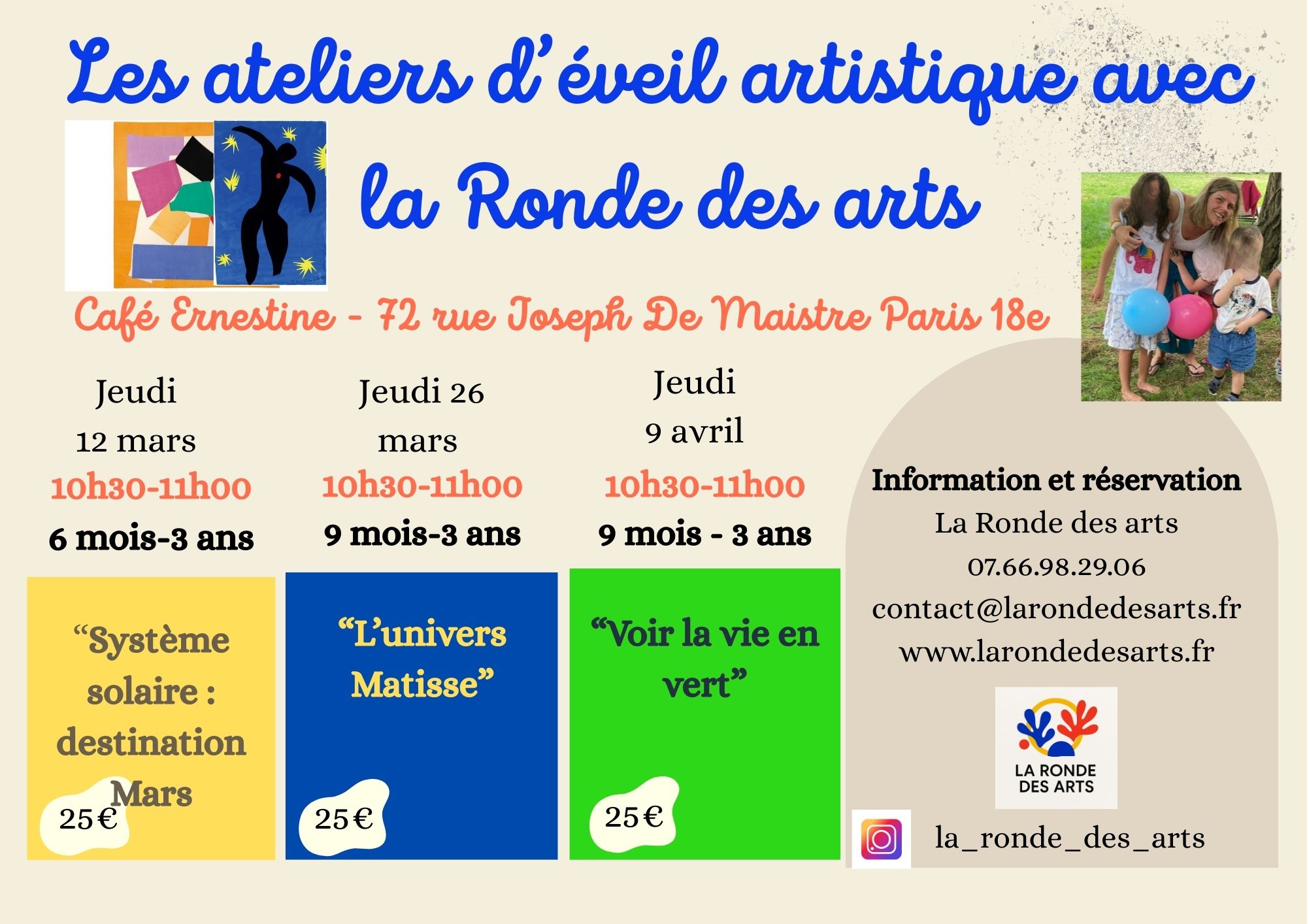 - Eveil Ă l’art et Ă la culture pour les enfants de 3 Ă 11 ans Ă Paris (1h00).