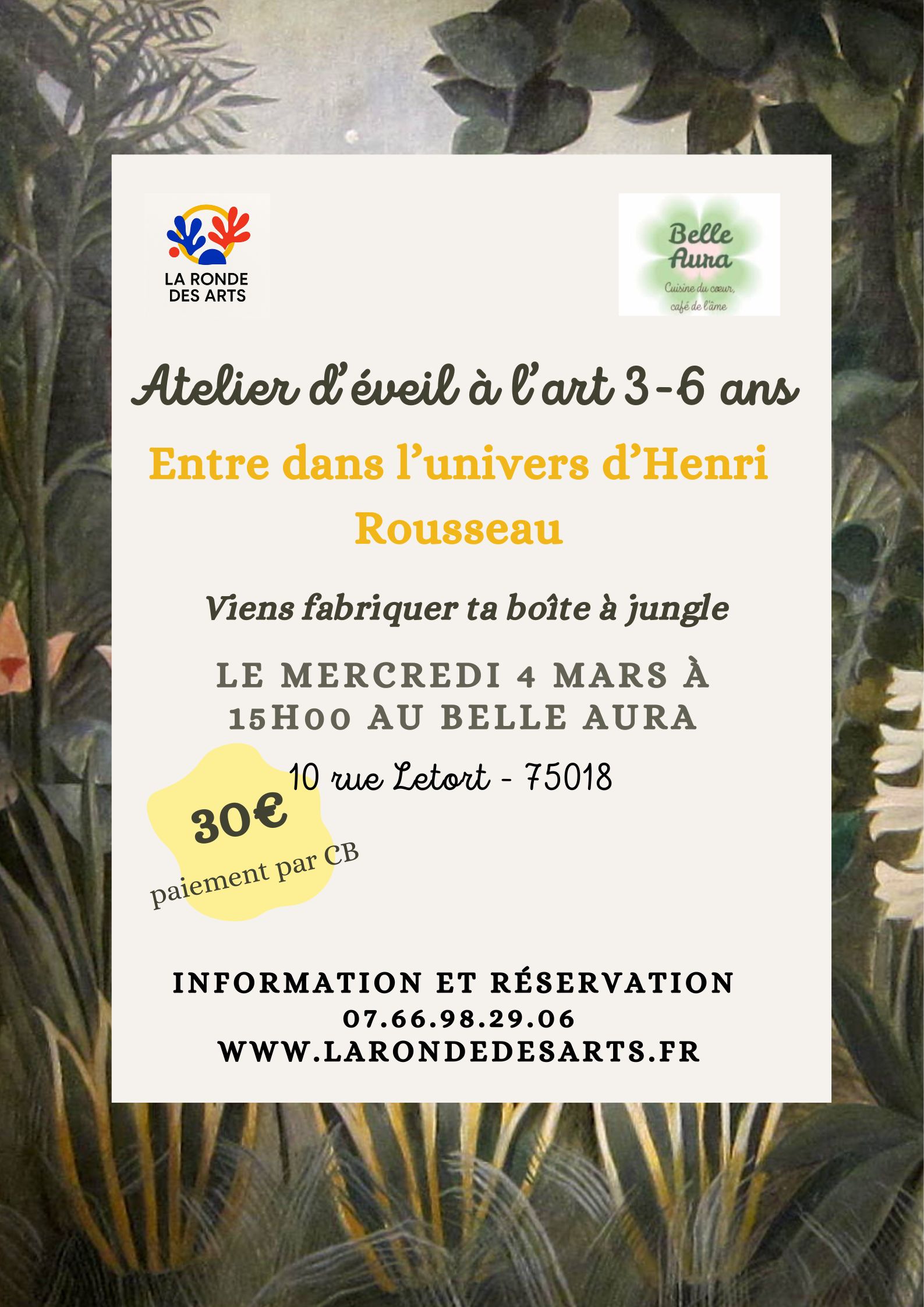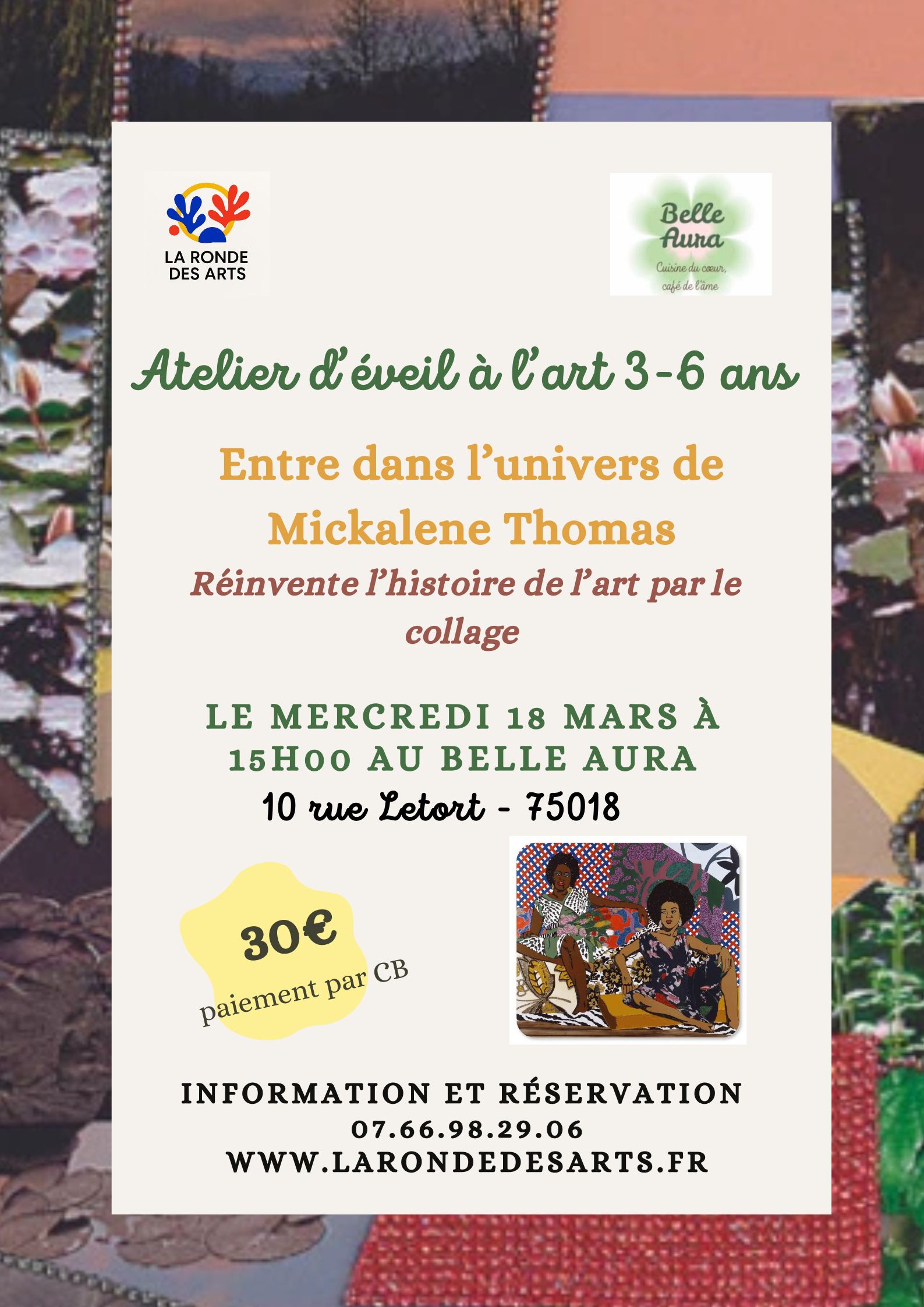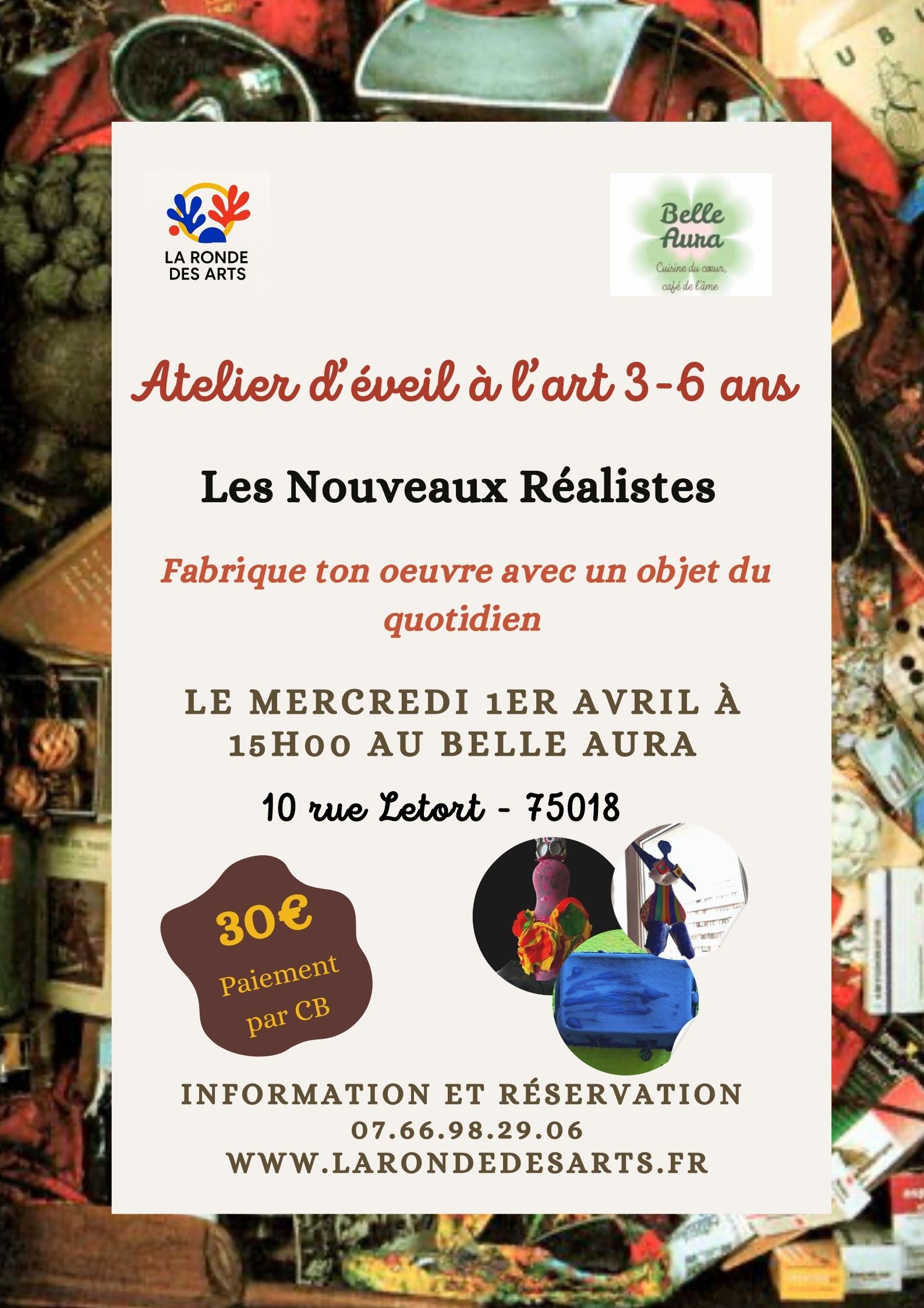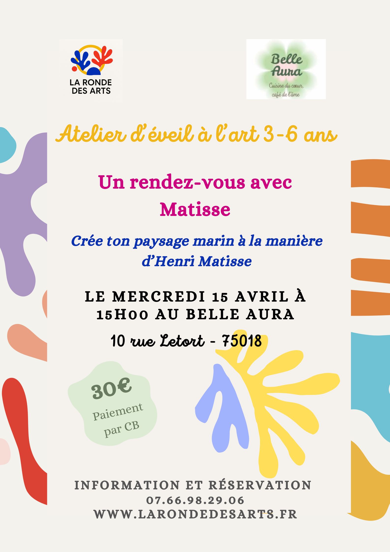 La Ronde des Arts s’associe avec le petit frère du café Ernestine, le Belle Aura. Situé 10 rue Letort, Bérengère propose des ateliers d’1h00 pour les enfants de 3 à 6 ans. Thématiques, ces ateliers créatifs sont un premier éveil à l’art et permettent à l’enfant de créer, de s’exprimer et d’inventer en toute liberté.