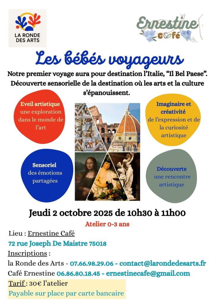 Initier les petits à l’art tout en s’amusant est au coeur de mes interventions. L’éveil des sens, la créativité, la découverte et le développement de l’imaginaire font partie de mes ateliers ludiques et sensoriels pensés pour les tout-petits.